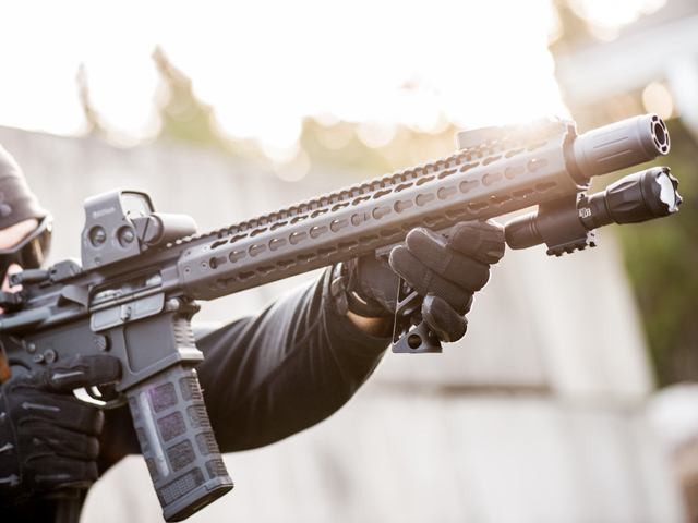 アングルはいわゆるコスタ撃ちといわれるファアハンドをまっすぐ突き出す握り方に適したアングルに。この持ち方でもグリップを強めに掛ける握り方とハンドガードを強く意識する持ち方とに別れます。