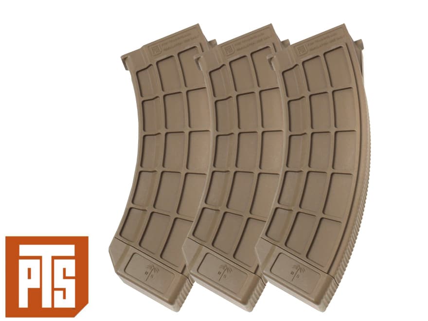 PTS製AK マガジン 150rd DE 3個パックです。東京マルイスタンダード電動ガンAKシリーズに適合します。