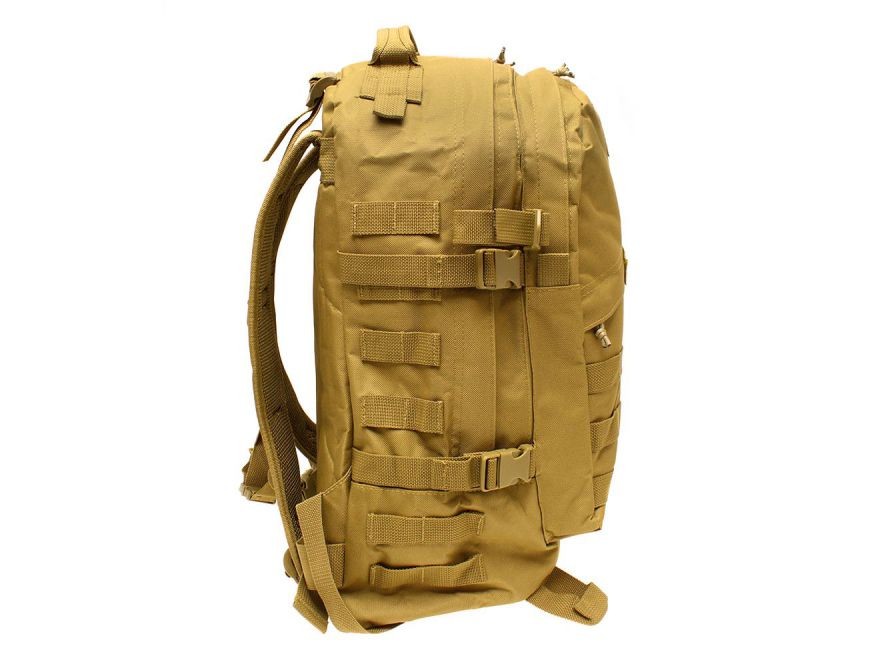シンプルなデザインですのでタウンユースでも違和感なく使え、サバゲにも使い勝手のいいバックパックです。