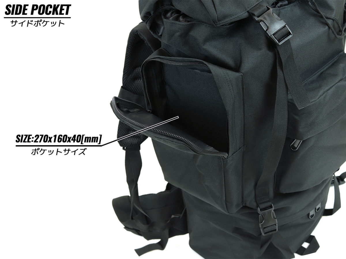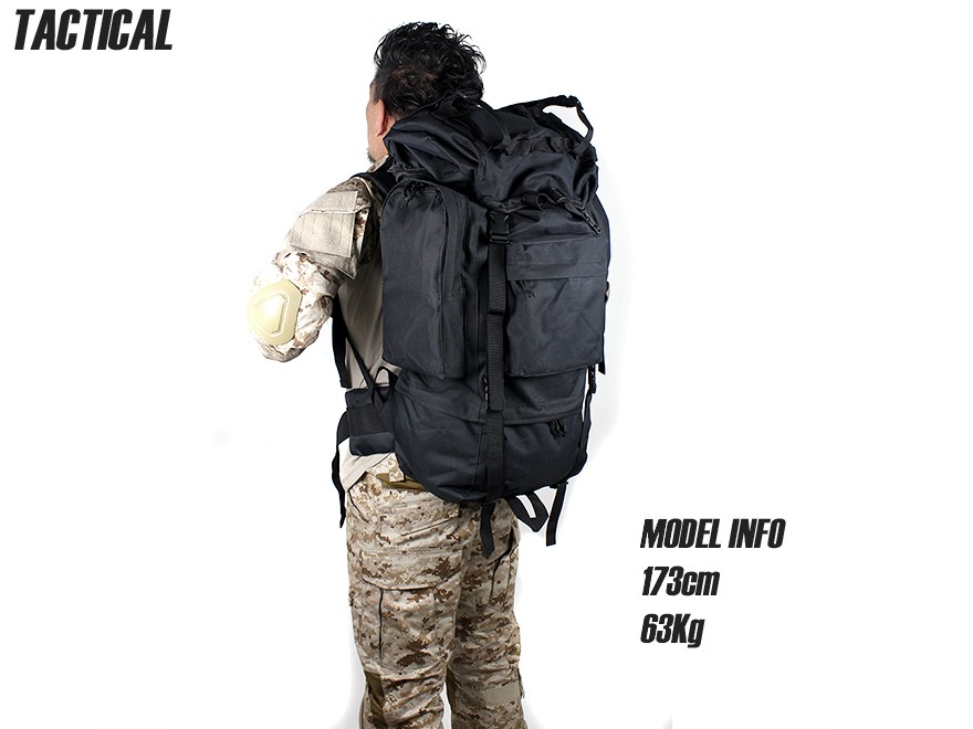 総容量54.3Lをほこるハイキャパシティなバックパックです。短めのガン本体にマガジン、BB弾、パッドやBDU、シャツやタオルなどの着替えを入れてもまだ余裕があるくらいの容量があります。
