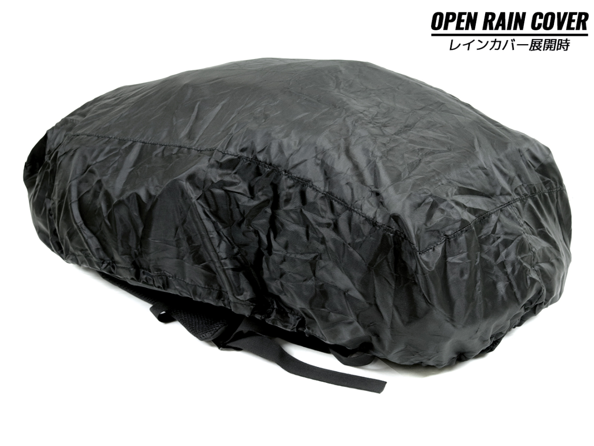 天面のカバーの付け根あたりにバックパック全体を覆うことが可能なポリエステルカバーが収納されています。急な雨などでもある程度バックパックを保護してくれます♪