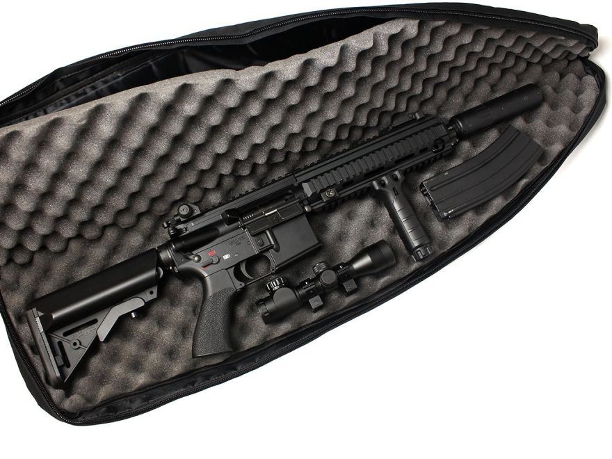 メインスペースは95cmのライフルスペース。ライフルの上下に対してのスペースがややせまく、レールに何か取り付けていると収納できません。マガジンも取り外す必要があります。