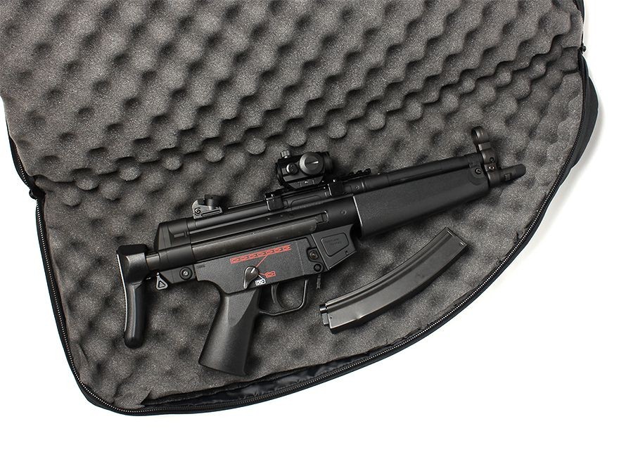 内部には分厚めのスポンジ。ガンをしっかりと守ってくれ、テンションがある程度かかるのでガンが中でごそごそ動きません。バンドで締め付けたりしないので出し入れも楽々。