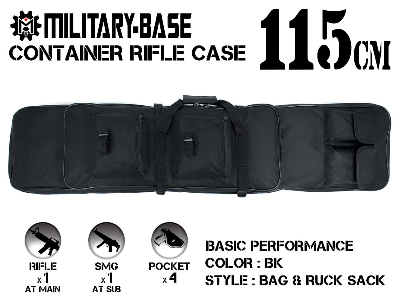 ●商品名 : MILITARY-BASE(ミリタリーベース)115cm コンテナライフルケース/BK
