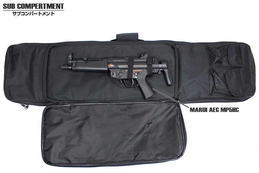 サブスペースには62cm以内のSMGを収納可能。こちらもハンドガード部を固定するベルクロバンドが2本設置されています。どちらのスペースもウレタンで囲まれているので2本がガチャガチャとあたるようなこともありません。