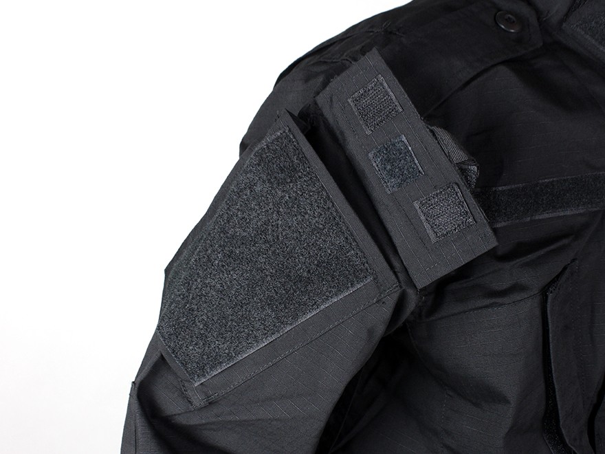胸部と上腕部にポケットを配置。上腕側は表面にベルクロスペースがあり、腕章をたくさん貼ることができます!