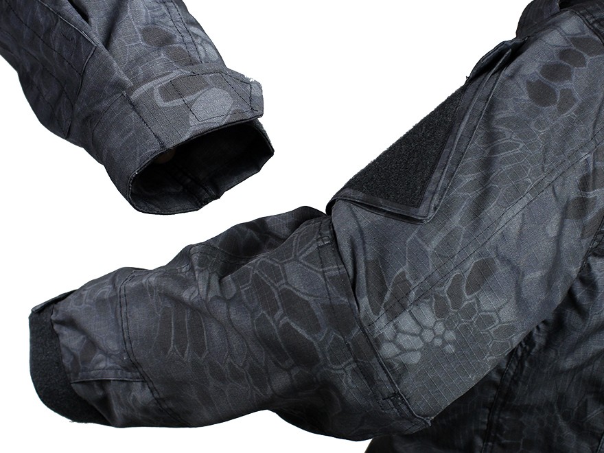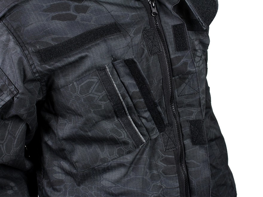ジャケット袖口はベルクロ、パンツ裾口はバンドを配置。体格や使用するブーツに合わせることでカッコよく着こなすことができます!またブッシュにも引っかかりにくくなります。