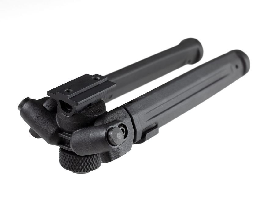 ポリマー樹脂で外装をカバーすることで、他のバイポッドよりも凹凸の少ないスリックなデザインとなっています。ブッシュ等への引っ掛かりが少なくなります。