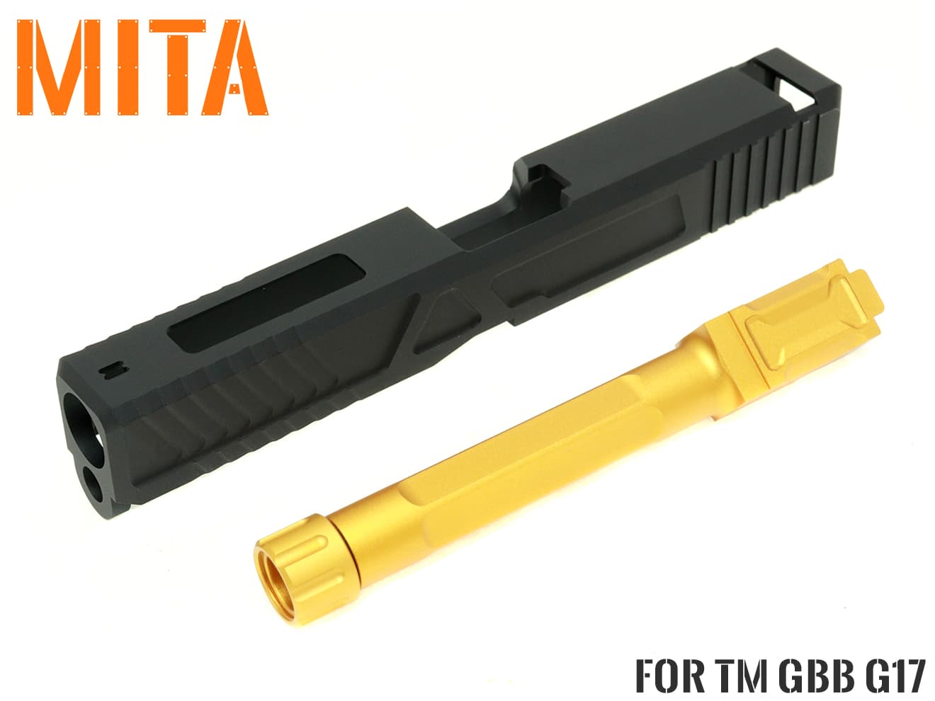 MITA アルミスライドCNC カスタムスライドキット for TM GBB G17です。東京マルイ ガスブローバック G17に対応します。