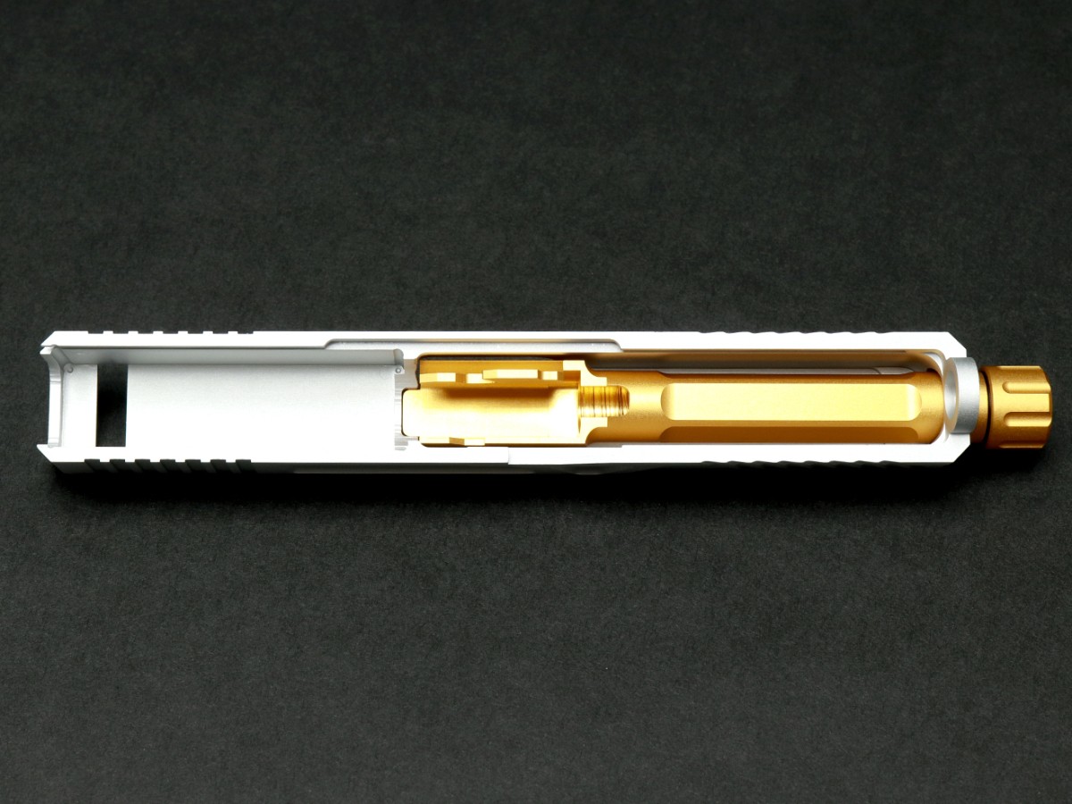 アウターバレルは先端に14mm逆ネジが設けられたスレッドタイプ。サイレンサーなどの取付が可能になっています。