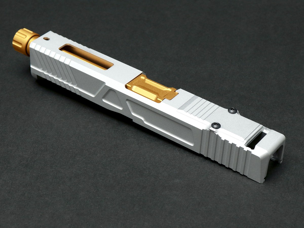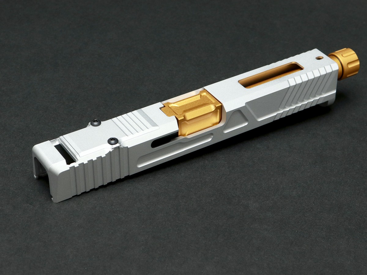 デザインはAGENCY ARMSのFIELD BATTLEスライドに近い雰囲気です。RMRがマウントできるようにリアサイト前方がえぐり取られています。嬉しいカバー付きですヨ。