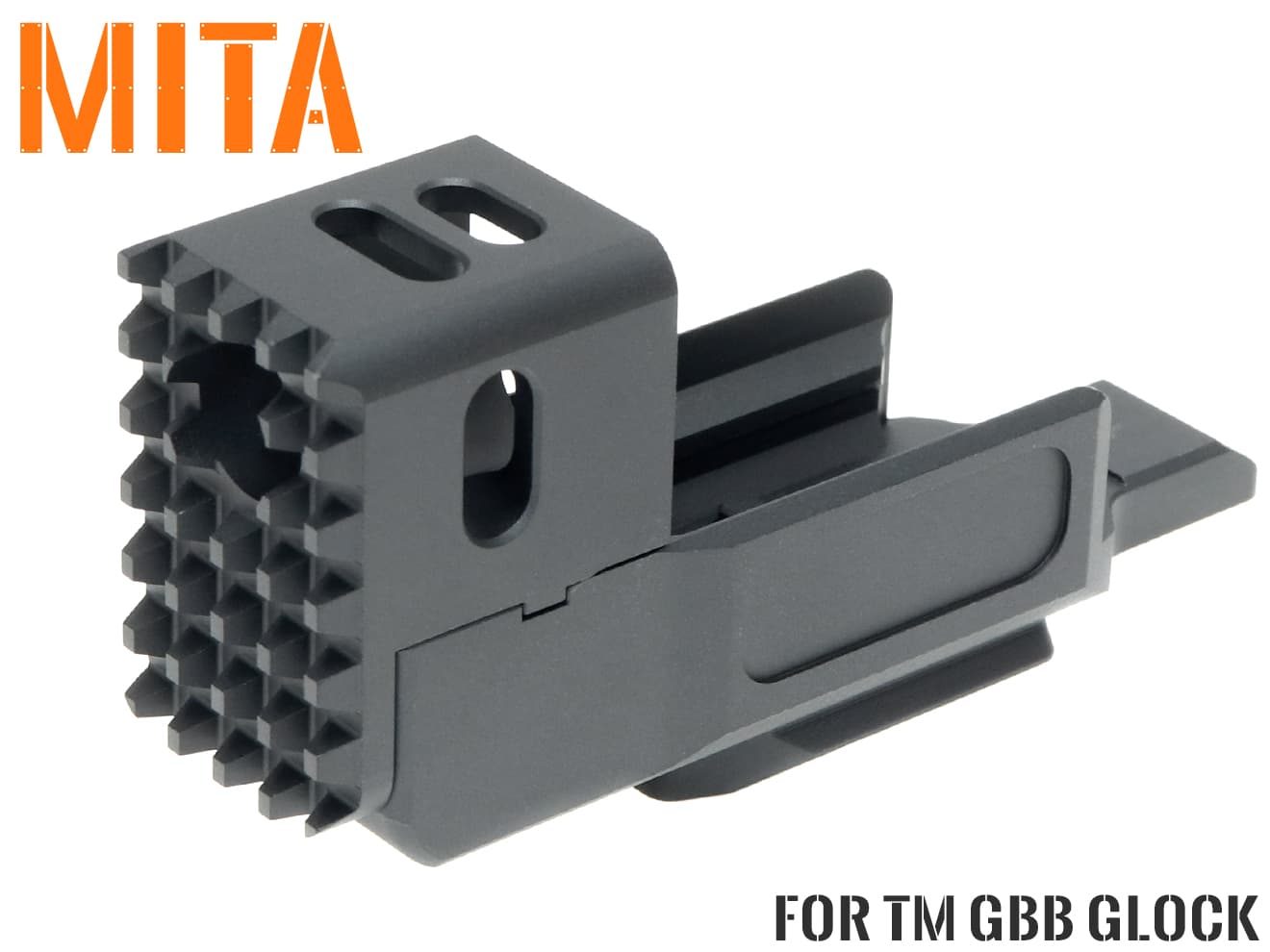 MITA アルミCNC レールマウント コンペンセイター for GLOCKです。各社GLOCKシリーズ(G17/G18C/G20/G21/G22/G31/G37)に適合します。