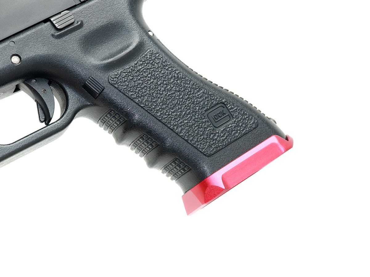 グリップ底面に取り付けるマグウェルと呼ばれるパーツです。マガジン挿入部を広くすることで、スムーズにマガジンを挿入することができます。
