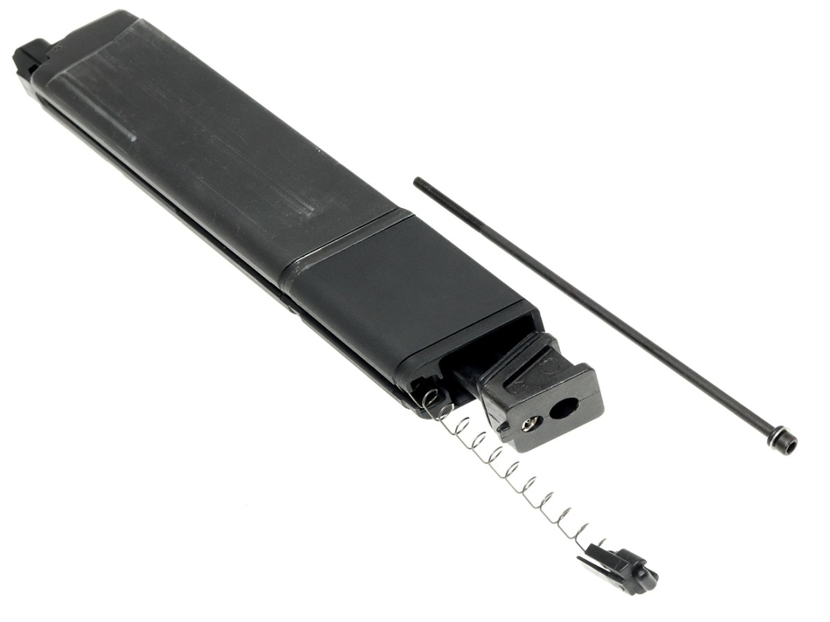 マガジンのボトムケースを延長することで約40%のガス量アップと、14発の装弾数アップを実現できます。